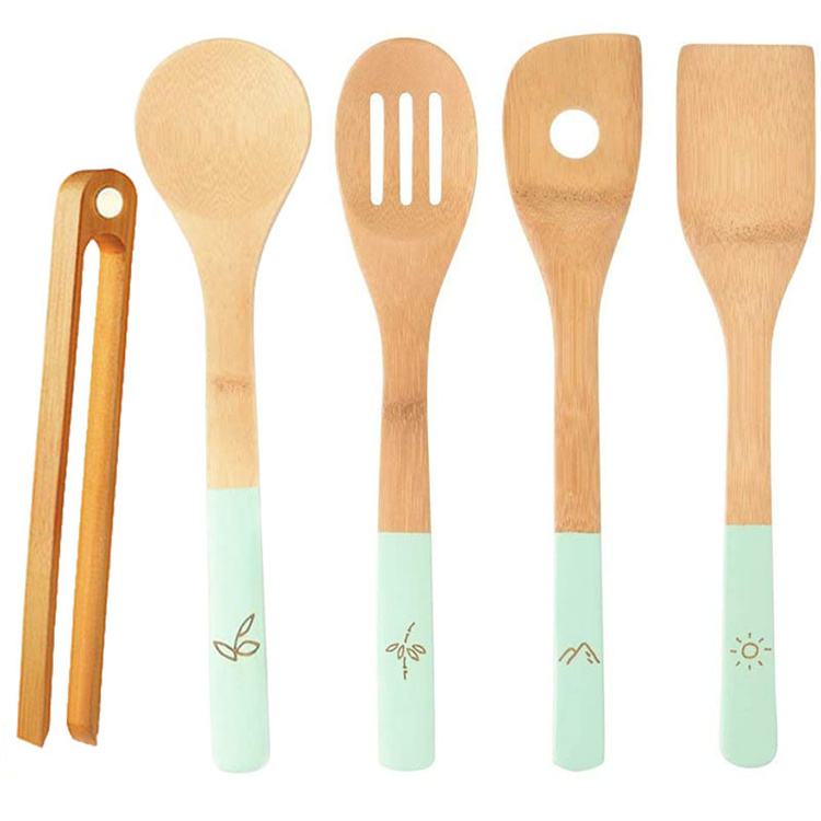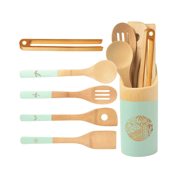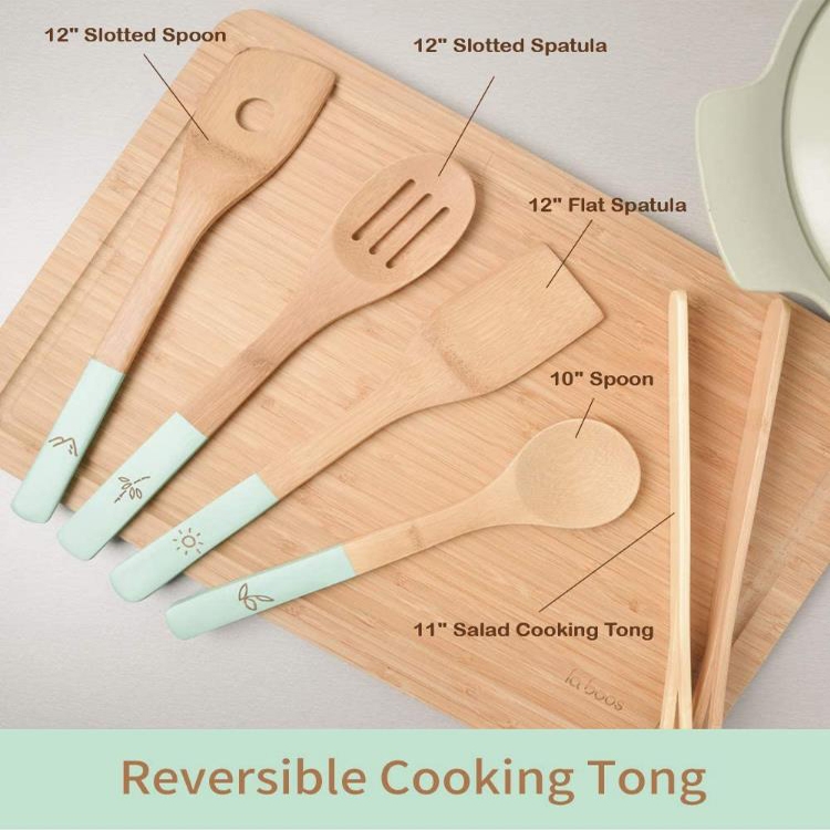 - Made From Organic Bamboo Material: Aesthetically pleasing and a truly wonderful collection of the most frequently used tools in any kitchen. Made with top-notch bamboo material the Zulay Kitchen Bamboo Utensil is designed to be sturdy, durable, and resistant to heat up to 700°F. This 6-piece cooking set comes with a slotted spoon, spoon, salad fork, turner, curved spatula, and holder.