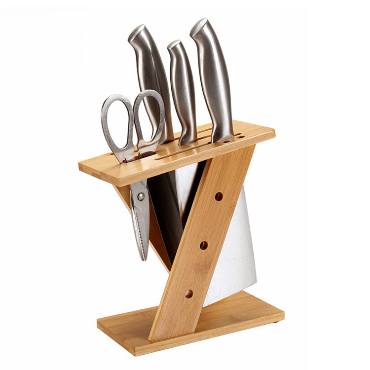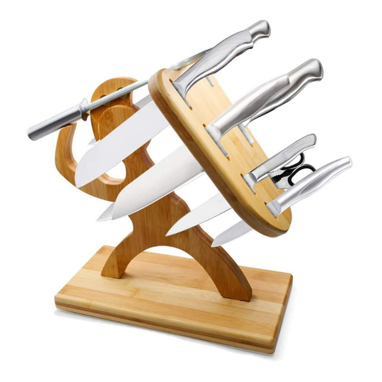 - Suitable For All Kinds Of Knives:Our universal knife block which is made of natural bamboo and high-quality plastic bristles can store any knife up to 8 inch with any blade shape. Fits the knives from smaller steak knives to larger chef knives.(Knives not included)No need to find the specific slot any more.