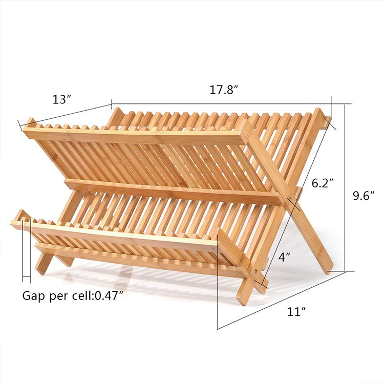 - FOLDING BAMBOO DISH RACK: Fold the dish rack to easily store when your dishes are done drying