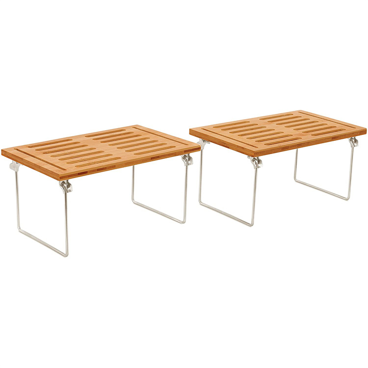 * STACKING STORAGE SHELVES: The bamboo stacking storage organizer is the perfect portable storage solution for your home.