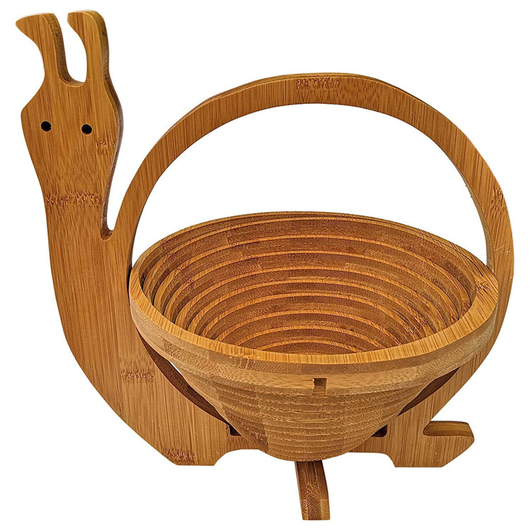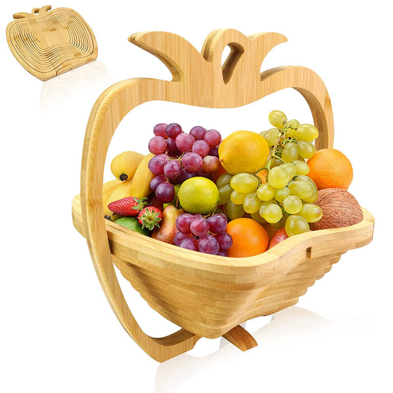 - Bamboo fruit basket with handle, spiral-cut fruit basket designed with a unique folding feature. Collapsible fruit basket was made of natural renewable bamboo material, which is safe, healthy and organic environmental