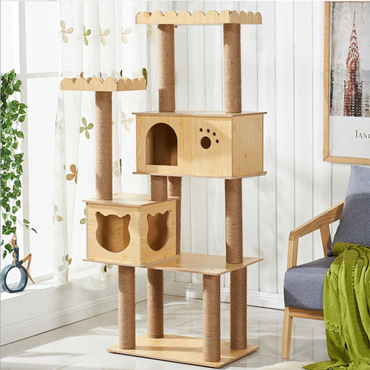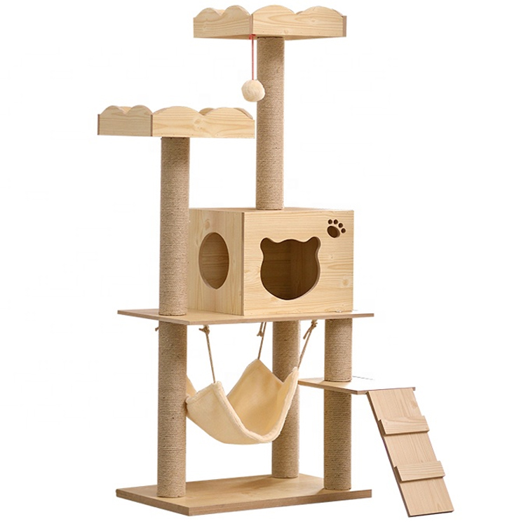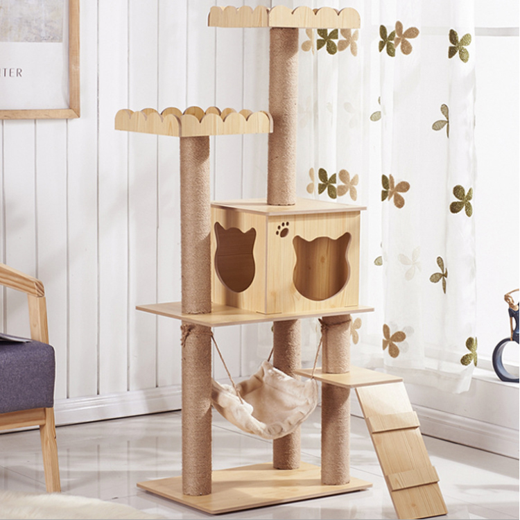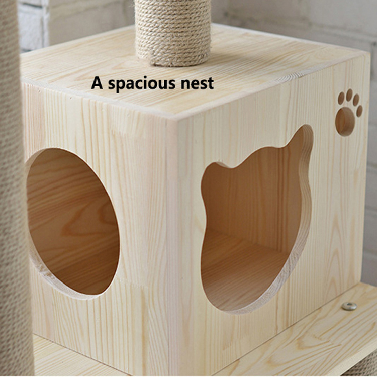 - DURABLE & STABLE STRUCTURE: Made of thick and environmentally friendly solid wood with a sturdy base, this cat tree provides ultimate stability for your feline friends’ safety. All pillars are wrapped with high-quality natural sisal, which is durable and wear-resistant and prevents cats from damaging furniture. Well-proportioned staircases keep the overall balance of this cat tree so that even an overactive cat will feel safe and relax when jumping or leaping to it.
