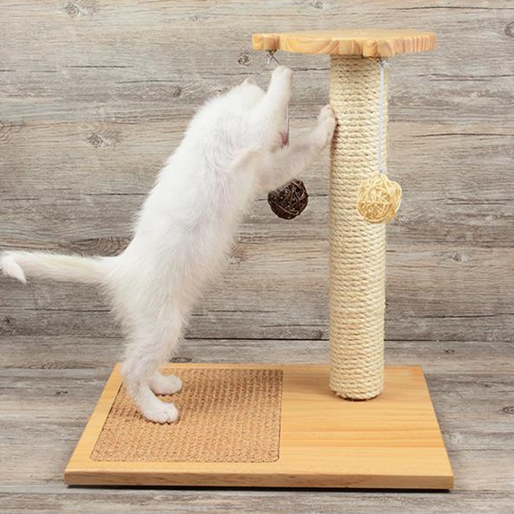 - LONG TERM USE– Simple and stable structure design, with a wooden platform and attractive bell mouse, perfectly integrated into any home space. Even more amazing is that it takes less than five minutes to install this cat scratcher post, no need to wait!