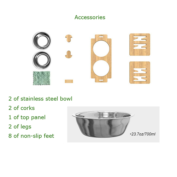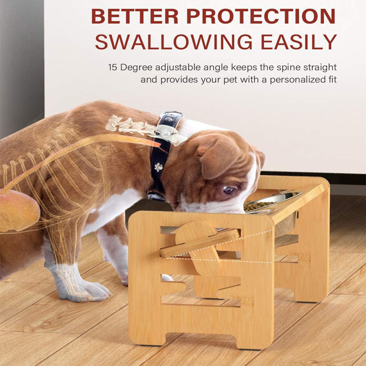 - Durable & Easy To Clean: Natural and odor-free bamboo wooden workmanship provides the elevated dog bowl with well-finished corners and a smooth surface. Two stainless-steel bowls are rust-resistant and dishwashers safe for easy cleaning and maintenance.