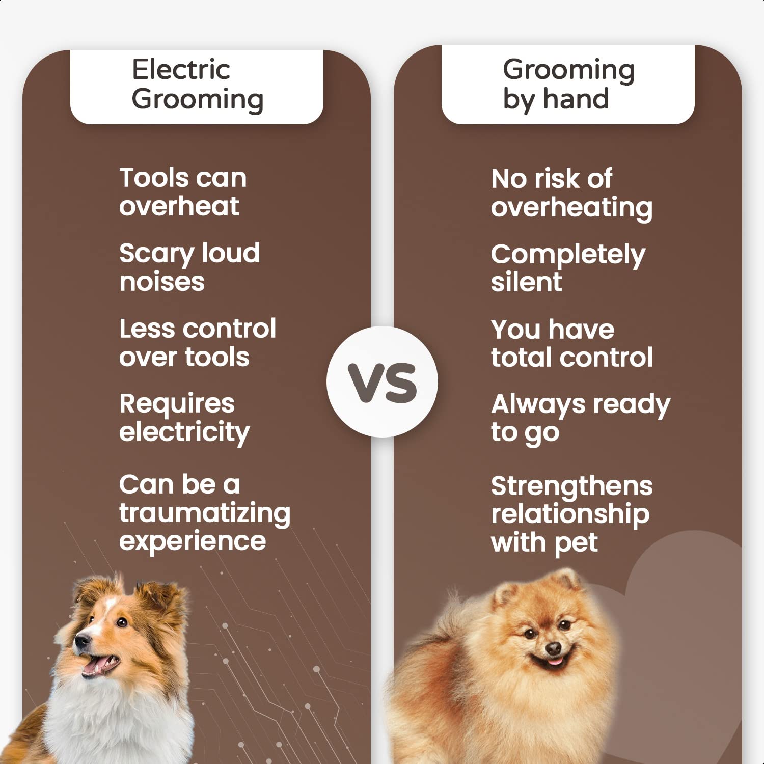 - 🐶BONDING EXPERIENCE: Electric tools can be scary and make your favorite furry friend fear their grooming forever not with these professional dog clippers for nails or nail trimmer for small dogs. However! Make grooming a pet-friendly bonding experience instead with this dematting tool for dogs or a grooming kit for small dogs, dog undercoat brush and cat hair brush shedding.
