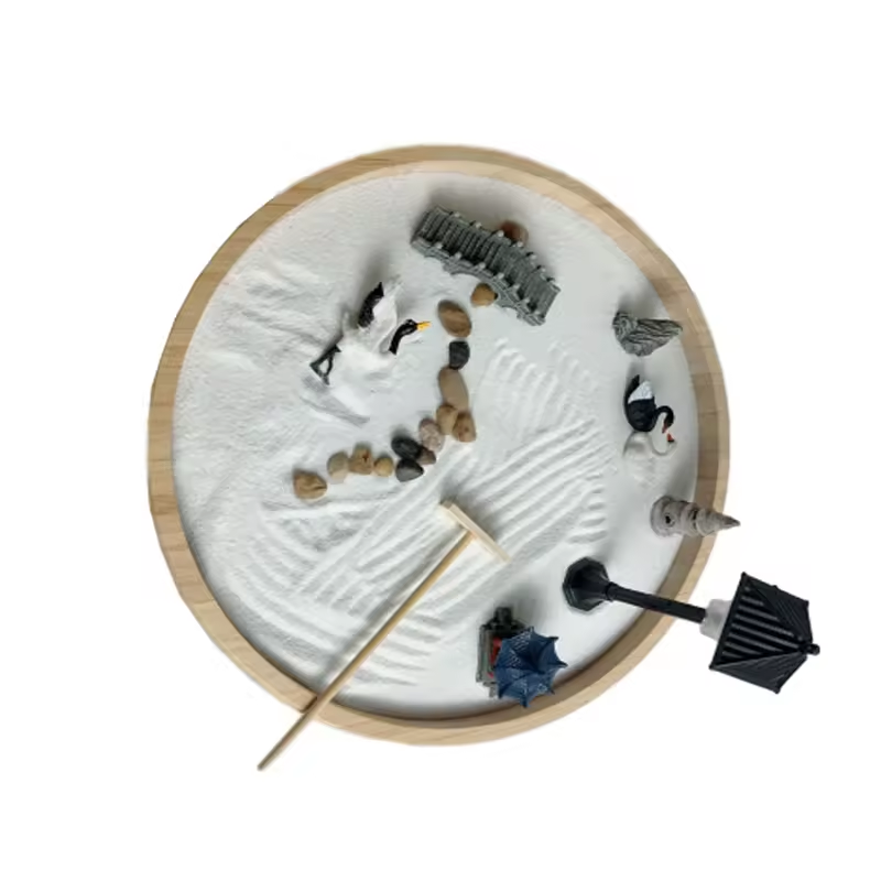- STRESS RELEASE- Zen Garden to release stress, meditate and find inner peace using the calming skill of sand raking with different handmade rakes Tools