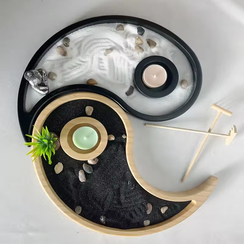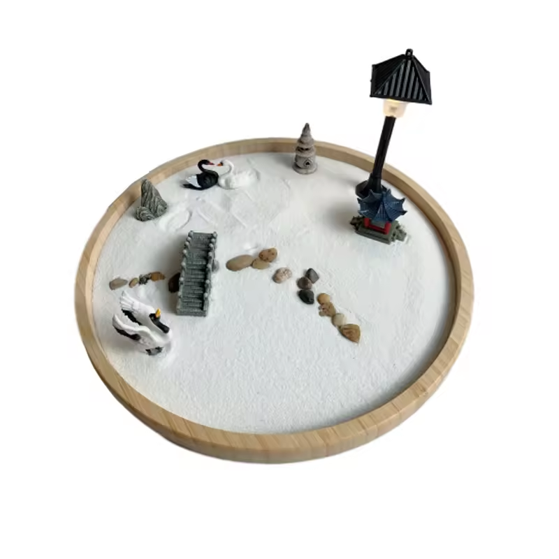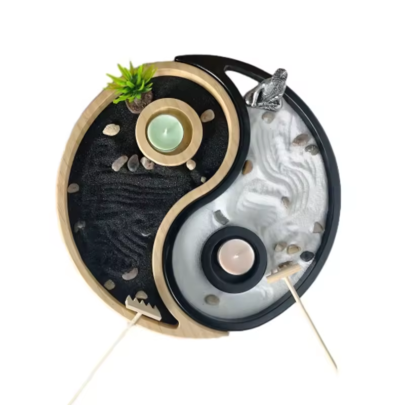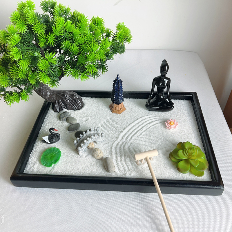 - DELUXE HOME DECORATION: Add some zen decor to your home or office with this sand garden. It is a stylish and elegant accessory that will enhance any space. You can place it on your wood desk, your bamboo kitchen, your meditation room, or anywhere else you want to add some zen.
