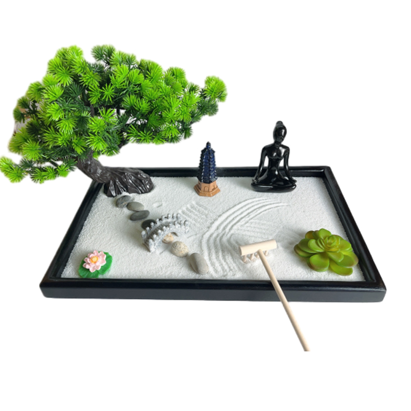 - TAKE A BREAK FROM STRESS: Enjoy some zen meditation time with this mini zen garden for desk. You can use the rake and tools to create soothing patterns or stunning sand art.